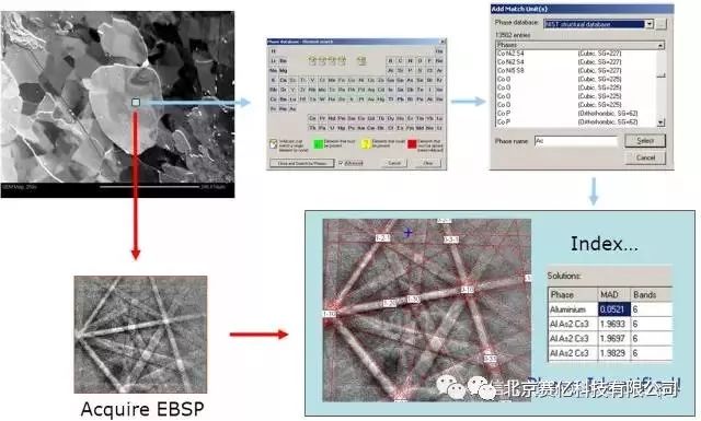 通过分析EBSP花样我们可以反过来推出电子束照射点的晶体学取向