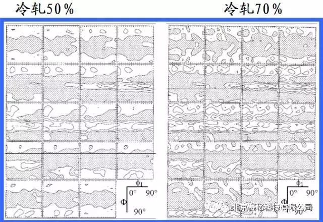 从图上可以看出,板材的织构是影响r值的主要因素。板材的γ-纤维织构(<111>||ND,ND为轧面法线方向)越强,其深冲性能越好。