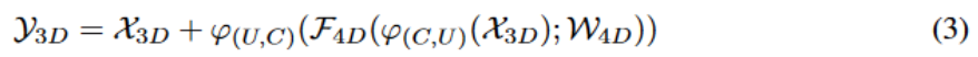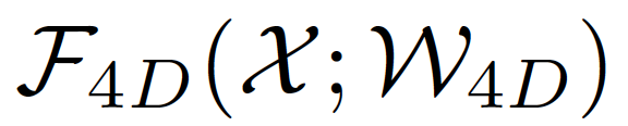 我们定义输入的尺寸是 (C,U,T,H,W),其中 C 是频道数量,U 是动作单元的数量,T、H、W分别代表每个动作单元的时间长度、高度和宽度。一个位于 (u,t,h,w) 的属于第 j 个频道的输出像素用来表示,4D 卷积可以被表示成