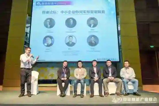 在7位嘉宾的精彩报告结束后,本次论坛迎来了高潮——圆桌论坛。中小企业如何实现智能制造?慈星股份副总裁李立军、阿里云首席智联网科学家丁险峰、珞石机器人联合创始人韩峰涛、极智嘉科技CTO李洪波、南京中科川思特软件科技有限公司董事长金自力、太平洋证券机械行业首席分析师刘国清围炉论道,各抒己见,为中小企业的智能制造之路指明发展方向。