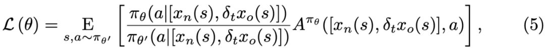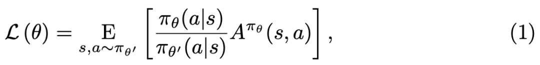 在上式中,θ'是用于训练旧策略的轨迹的参数,θ是更新的最新策略,而 A^{π_θ}(s, a) 则表示 a 相对于策略π_θ操作中的优势。