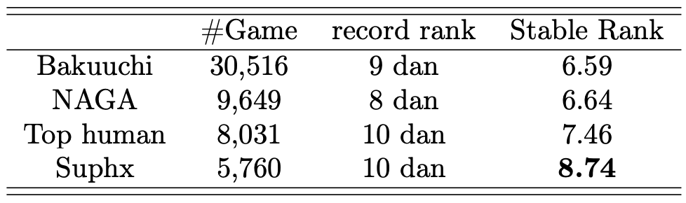 下表 4 是 Suphx 与 AI/人类玩家的对战结果比较,在稳定性上,Suphx 比 Bakuuchi 和 NAGA 都要高出大概两个段位,后两者是此前最强大的两个麻将 AI 系统。