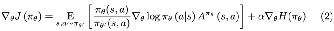 其中 H(π_θ) 是策略π_θ的熵,而α> 0 则是权衡系数。