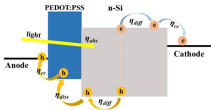 单晶硅电池由于高的转换效率和良好的稳定性占据了太阳能电池的大部分市场,然而,单晶硅电池的生产需要经过高温高压的掺杂过程,使得其成本极高,同时也会用到磷烷等有毒气体,生产过程具有很大的危险性。为了降低电池发电成本,研究者将 P 型有机半导体材料和N型单晶硅结合在一起制备新型有机/无机杂化太阳能电池。这种有机/无机杂化电池综合了两种材料的优点, 既利用了无机半导体材料载流子迁移率高、消光系数高、化学稳定性好, 又保留了有机半导体材料光吸收系数高,可低成本、大面积、全塑料化地制造等优点,是一种很有发展前景的新型太阳能电池。