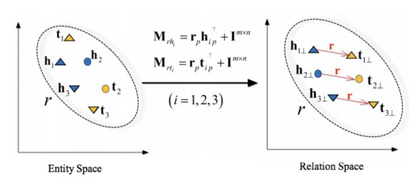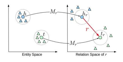 TransR有效增强了表示学习的表达能力,但它也有不足之处,其中最明显的问题在于TransR为每个关系引入了一个映射矩阵,使得其参数数量远大于TransE和TransH,因此难以应用于大规模知识图谱。