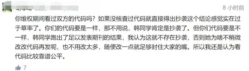 还有网友认为,在涉及的论文中,文中的图和表述都有很大的不同,并不是大段内容抄袭,所以说成是剽窃科研成果很难成立,还得需要充分的证据,比如要想证明抄袭与否,还是应该双方拿出代码对比一下。