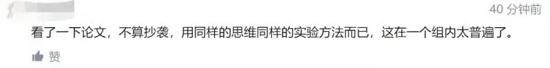 对于上述疑似剽窃的学术行为,有网友认为组内举报抄袭确实比较难。对于计算机类的研究者来说,有些内容大家都是通用的,何况是同一个研究组的同学。在同一个实验课题组内,方法和实验相似很常见,不能说是抄袭。有些来自相同实验室的学生,假如高一级的学生毕业了,实验方法会延续到下一届。