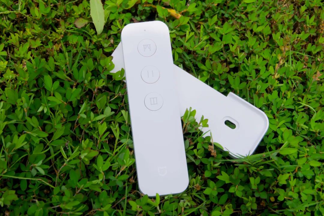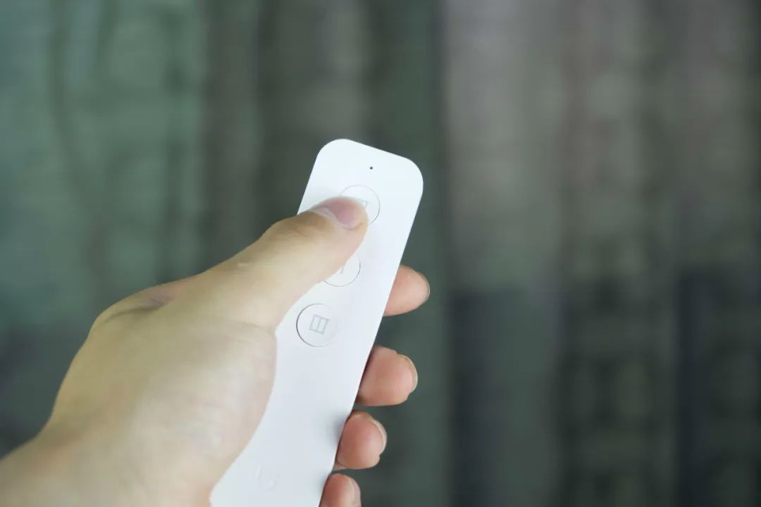 窗帘还标配了一个蓝牙遥控器,可以很方便的进行开关操作,蓝牙连接的方式保证了断网后也能正常使用,这个遥控器的设计也很米家,整机纯白,外观有点像电视遥控。