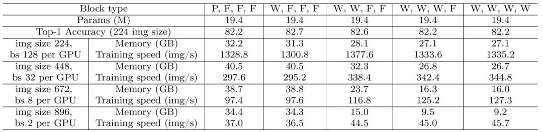 然而,引入这样的窗口注意力机制会制约Vision Transformer模型对长距离信息的建模能力。为此,我们探索了在不同阶段使用窗口注意力机制对模型表现和计算代价的影响,结果如表2所示。在表2中,P代表使用performer进行注意力计算,F表示使用全注意力机制,W表示使用窗口注意力机制。我们发现,在前两个阶段使用窗口注意力机制,后两个阶段使用全注意力机制可以取得性能和计算代价的最佳权衡。因此,我们采用了“WWFF”的方式对ViTAEv2模型进行了设计。此外,需要注意的是,ViTAEv2模型并不需要Swin Transformer中采用的额外相对位置编码和窗口移动(window shift)机制即可得到较好的效果,这归功于ViTAE模型中卷积模块已经能够提供位置信息并促进跨窗信息融合。对相对位置编码和窗口移动机制的消融实验结果如表3所示。