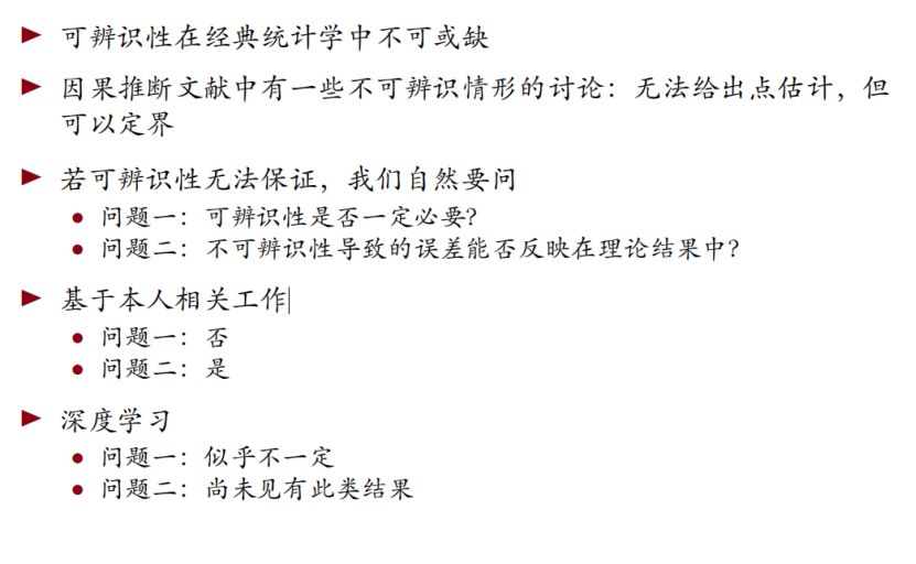 理论保证难:如果没有可辨识性,就根本不知道目标在哪儿,没有努力的方向,也不知道要保证什么。