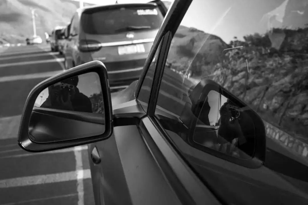 照片故事:拍摄这张照片的时候,我派车队停在一段公路的中段、一个适合拍摄风景的地方。我对于大理的自然景观其实没有特别大的兴趣,自己瞎转的时候看到了老麦特斯拉反光镜的折射,于是给不怎么自拍的自己拍了一张特别的自拍照。