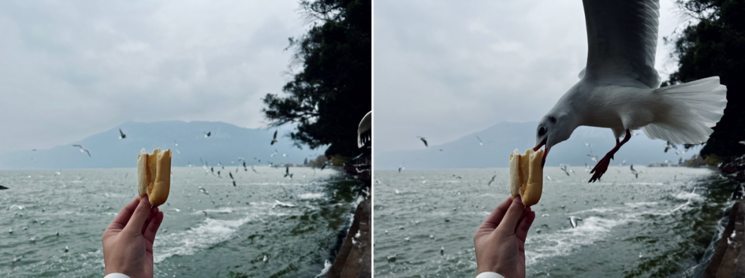 照片故事:昆明滇池公园拍到工友 Sam 喂食海鸥。其实还有视频版,Sam 因为被海鸥叼走超大一块面包,口吐出耳熟能详的那四个字。