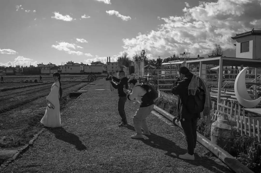 照片故事:在游览的第二天,我们前往喜洲古镇,恰好有位工友穿了汉服,日常其实很少有机会在自然环境优美的地方拍摄人像(主要是也没人愿意穿戴好让你拍)。于是抓紧机会,使用 2× 来了几张之后觉得一般,换到 5× 长焦发现了惊喜,服装袖子花纹加上侧脸,还有远山和白云相得益彰,vivo 相机的人像算法也十分讨喜。