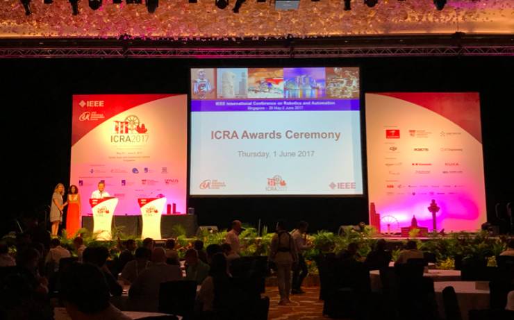 ICRA 2017 临近尾声的时候,我们也迎来了本次大会的又一个小高潮——Award Ceremony,本次大会将为在机器人与自动化领域做出巨大贡献和学术成果的个人及团队颁发一系列奖项,AI 科技评论此前在介绍各大细分领域的获奖论文时,也已经对论文内容做了详细介绍。