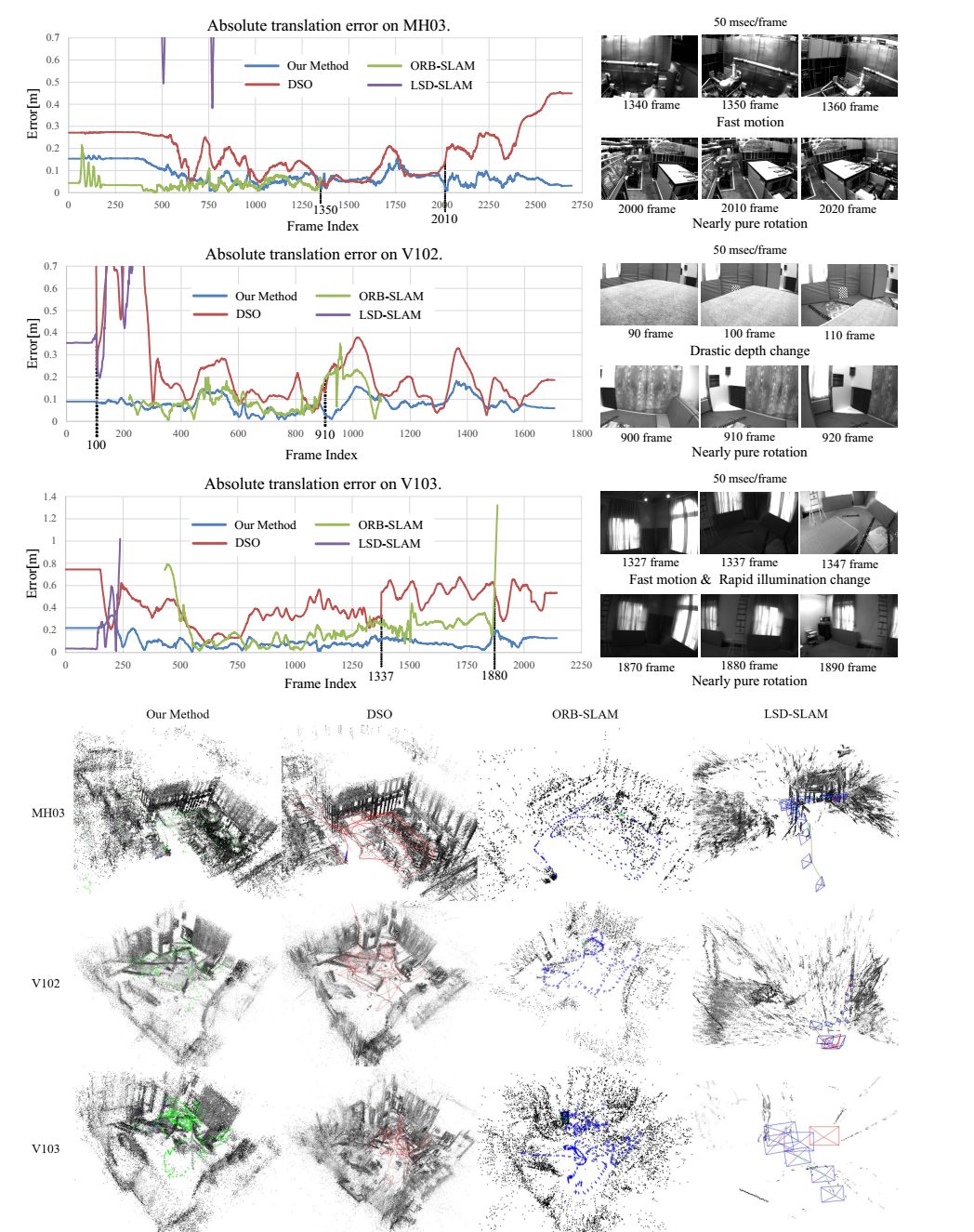 Vitamin-E通过利用主导流跟踪图像曲率的极值来跟踪特征点。由于Vitamin-E只依赖于极值而不是传统间接方法中使用的特征描述符,因此它不受图像噪声或光照变化引起的特征描述符变化的影响,这使得维生素E具有很强的鲁棒性。