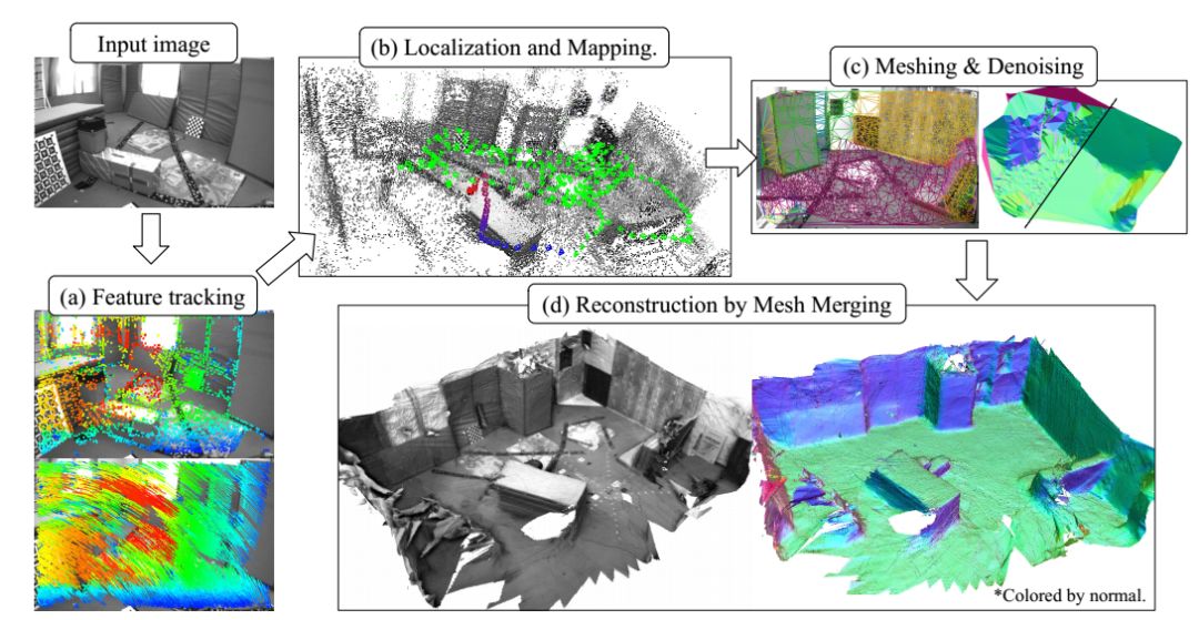 虽然前端过程在每个帧中并行运行,但生成3D网格模型的后端过程在一定间隔内执行。