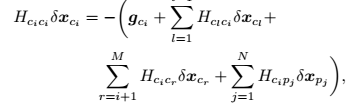 然而,在每帧中保持数千个特征点的情况下,就像Vitamin-E中的密集极值跟踪一样,矩阵H的大小基本上不能足够小,因为变量消除仅适用于与当前帧无关的旧变量,以实现稳定性。此外,Schur 补码矩阵的大小与特征点的数量成正比,因此,在H大小为100000×100000或更大的数万个点上进行束调整的计算成本太高,无法实时进行束调整。