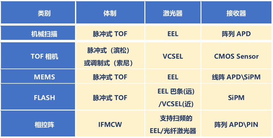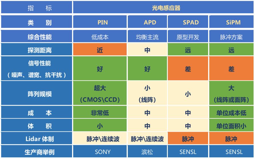 接收探测器有 PIN、APD(雪崩二极管)、SiPM(硅光电倍增管)、SPAD(单光子雪崩二极管)等等。