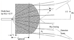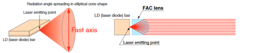 光学系统主要作用包括准直和分光。所谓激光,就是受激辐射产生的光。激光形成的时候,并不是直直的一束,和手电筒产生的光一样,也是发散的。激光发射出来的时候,其发散角度有 8(慢轴)到 30 度(快轴),要通过光学系统将束散角控制到 mrad(0.1°)这个量级,才能有效的聚集能量。对于要求高的激光器,甚至需要通过光纤进行准直。