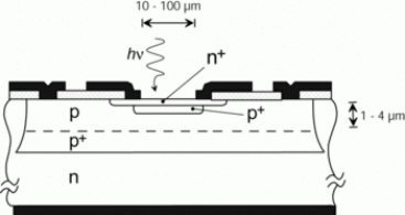 单光子雪崩二极管探测器,是工作在击穿区的 APD。他的灵敏度很高,一个光子就可以使得二极管激发出大电流(APD 需要 20 个),增益可达 10e6。