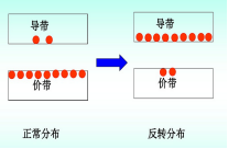 常温下,高能态上的粒子总少于低能态上的粒子数。这样是没办法产生激光的。只有当高能级的粒子多于低能级时,才能发生雪崩效应,导致大多数粒子发光。这就是激光产生的第二条件:粒子数反转。