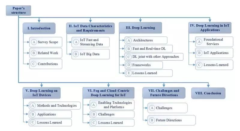 作者对于目前应用了深度学习方法的大量 IoT 应用进行了介绍,并且对不同类型的深度神经网络在各种 IoT 领域的应用进行了概括和对比。