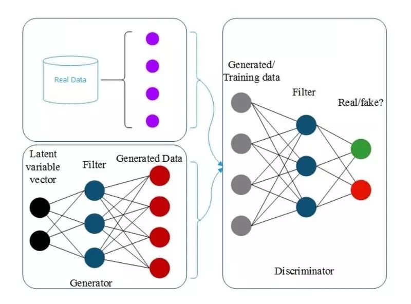 GAN 由两个神经网络组成,一个生成网络,一个判别网络,共同工作来产生合成的、高质量数据。生成器根据数据在训练数据集中的分布生成新数据,判别器学习判别真实数据和生成器生成的假数据。GAN 的目标函数是基于极大极小博弈的,一个网络要最大化目标函数,而另一个要最小化目标函数。