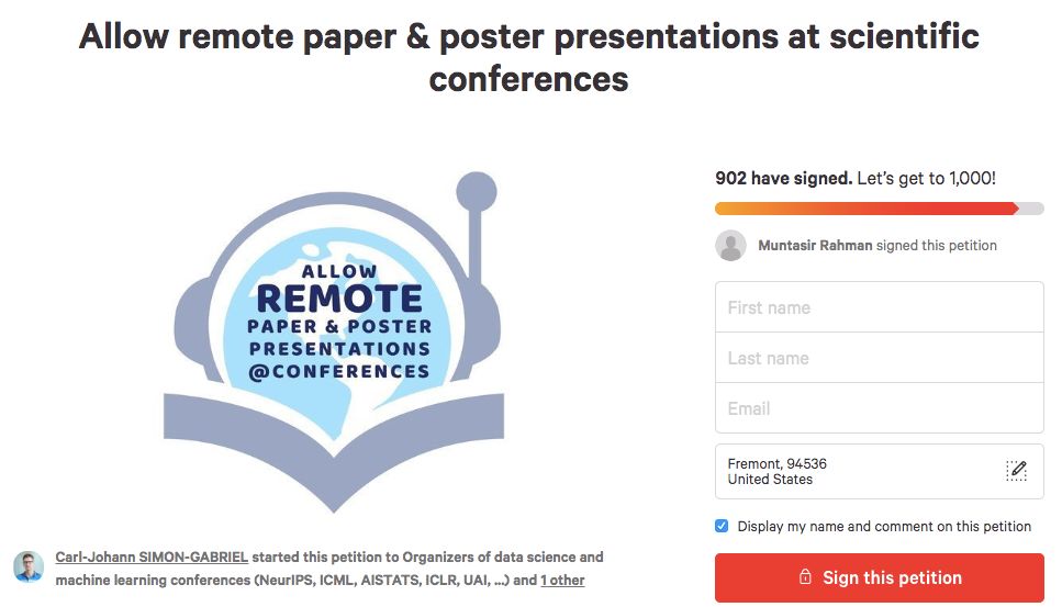 Bengio支持,关于允许机器学习学术会议进行远程论文和海报展示的请愿书