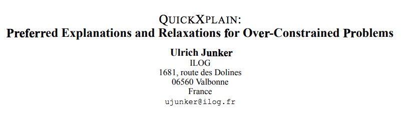 题目:QUICKXPLAIN: Preferred Explanations and Relaxations for Over-Constrained Problems