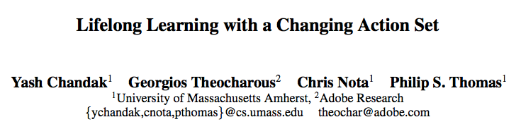 题目:Lifelong Learning with a Changing Action Set (利用不断变化的操作集进行终身学习)