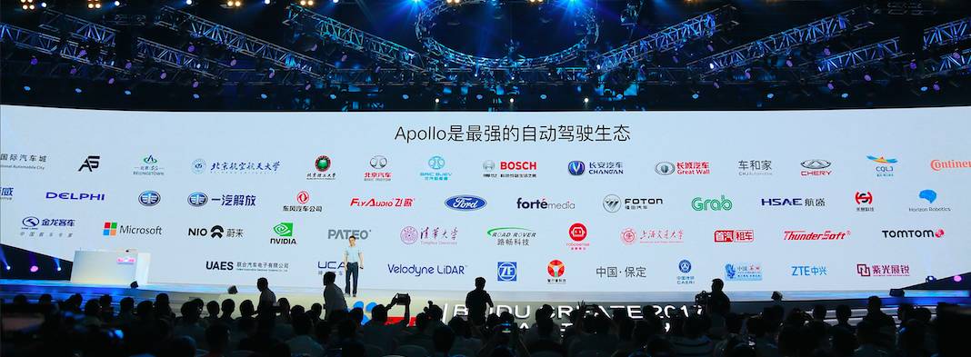 陆奇还公布了50个初始合作伙伴整容豪华,其中包括了微软、博世、长安、一汽等厂商,他表示:今天的Apollo已经是世界上最强大的自动驾驶生态。