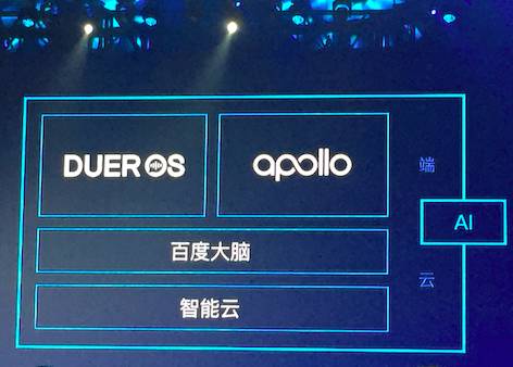 在前端,百度将提供 DuerOS 与 Apollo ;在后端,百度将提供百度大脑和百度智能云。 DuerOS、Apollo、百度大脑和百度智能云等综合在一起,组成为一个AI生态。
