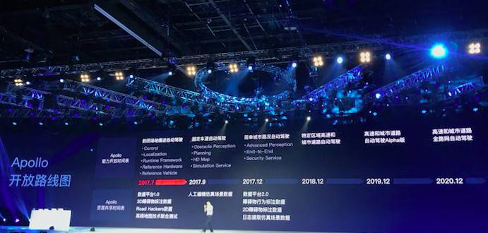 在今年的4月19日,百度对外发布了“Apollo(阿波罗)计划”,向汽车行业及自动驾驶领域的合作伙伴提供一个开放、完整、安全的软件平台,帮助他们结合车辆和硬件系统,快速搭建一套属于自己的完整的自动驾驶系统。在今天的大会现场,陆奇进一步详细介绍了Apollo计划。