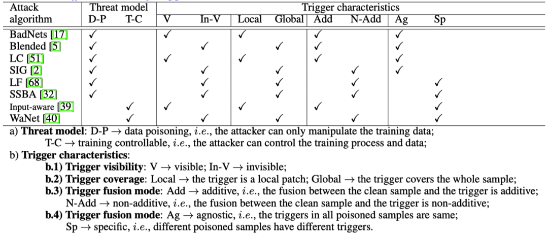 然而,我们注意到很多新方法的评估往往不够充分,通常其论文中只会对比一小部分方法/模型/数据集。如果没有完整的评估和公平比较,则很难验证和评估新方法的真实性能,并且会阻碍对后门学习的内在原理的探索。