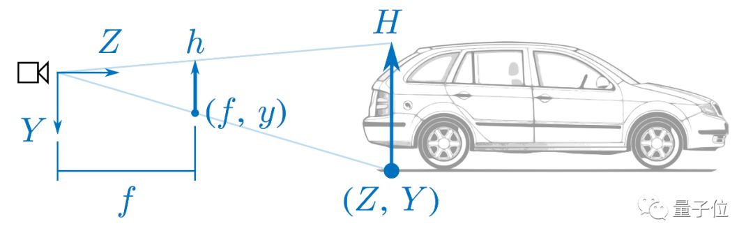 从上面公式可知,我们需要知道实际世界中的车宽(或车高),然后通过物体在图像中的像素高度即可换算出来实际物体的距离。直观上来理解,物体应该是近大远小的。