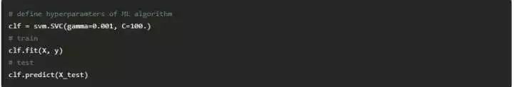 每个库都有自己的“实施细节”,即按照其编码模式编写的一种方法。例如,在执行scikit-learn时,首先创建所需算法的对象,然后在训练集上构建一个模型,并对测试集进行预测。例如: