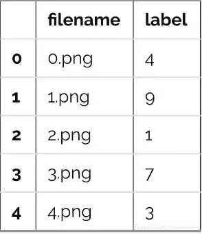 让我们看看数据集。这些格式为CSV格式,并且具有相应标签的文件名: