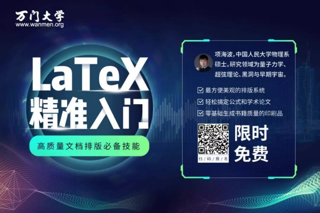 是否还在因为论文写作排版问题纠结呢?给大家推荐一套万门大学的LaTex精准入门教程。限时免费,名额有限,先到先得哦。