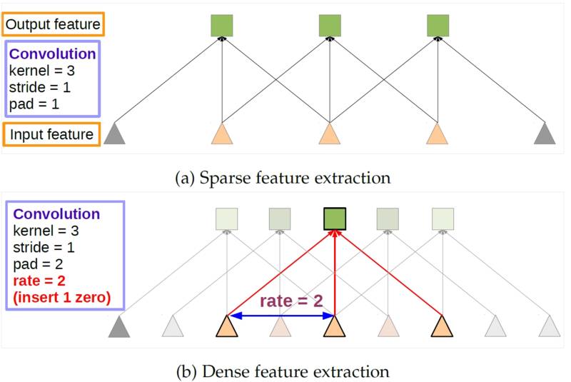 在服装语义分割中,人体结构和服装位置之间的相对关系,对提高分割效果来说至关重要。我们在实际工作中,借鉴了 DeepLab 论文(DeepLab: Semantic Image Segmentation with Deep Convolutional Nets, Atrous Convolution, and Fully Connected CRFs. arXiv:1606.00915, 2016) 的空洞卷积(Atrous Convolution)思想,保留了池化层中所舍弃的位置结构信息。