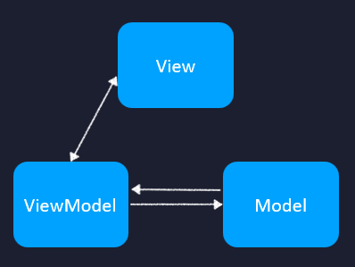 第三种是 MVVM 模式,我们可以跟 MVP 模式对比,它们主要的区别是 MVVM 中 Model 跟 View 这层通过 Data Binding 的机制让它能够自动做绑定从而简化通讯接口的设计。