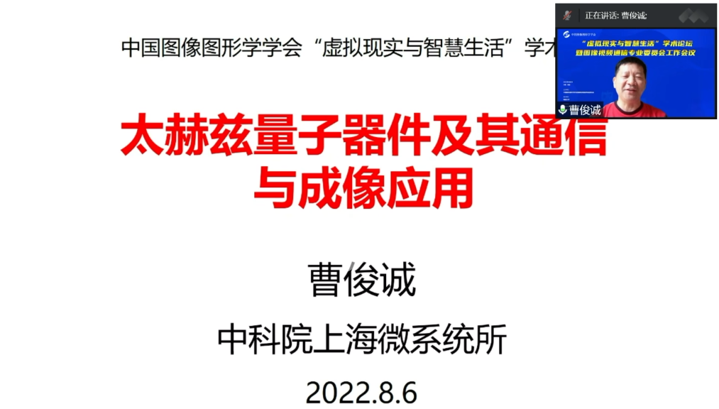 来自中科院上海微系统与信息技术研究所的曹俊诚研究员作《太赫兹量子器件及其通信与成像应用》的学术报告。报告重点报道了THz辐射与低维半导体相互作用物理,THz 量子级联激光器和 THz 量子阱探测器材料生长,器件研制以及 THz 通信与成像等应用领域的研究进展。