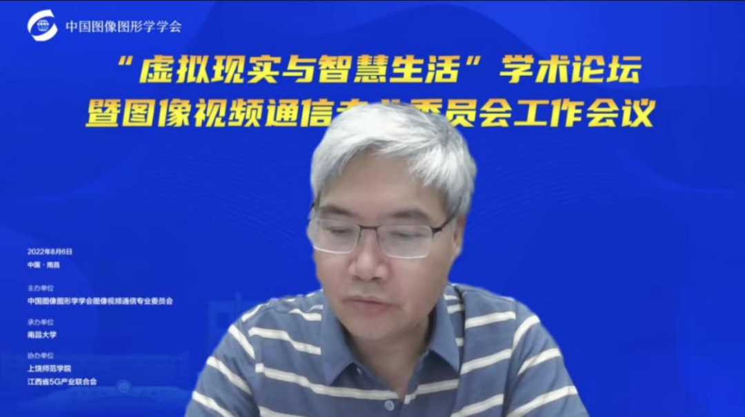 2022年8月6日,CSIG图像视频通信专委会组织召开“虚拟现实与智慧生活”学术论坛暨2022年度专委会工作会议。会议由南昌大学承办,上饶师范学院、江西省5G产业联合会协办。专委会创始人、名誉主任朱光喜教授担任本次会议的名誉主席,刘文予教授、王玉皞教授担任本次会议的大会主席,刘且根、杨建荣、李安、余礼苏担任本地主席。会议由王玉皞教授、李安教授主持。本次会议受疫情影响,以线上线下结合的方式举行,《电子与信息学报》为本次会议提供直播平台和媒体宣传报道,得到了广泛关注,线上累计观看14500人次,累计观看次数16000次。
