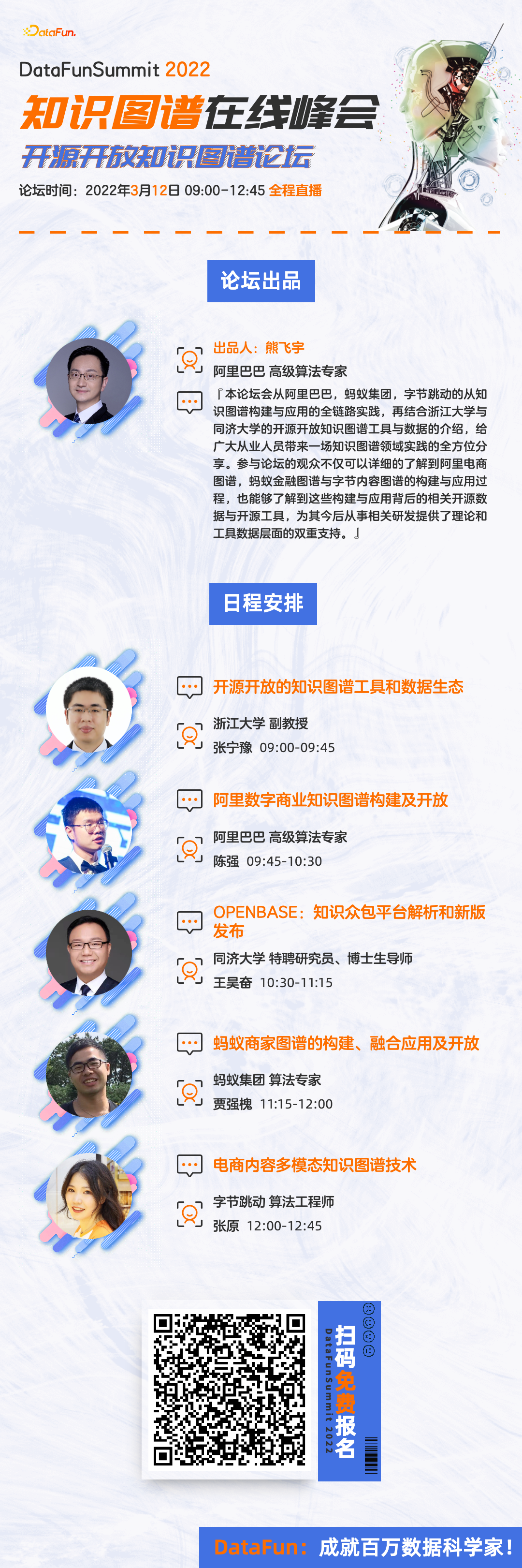 议题简介:王昊奋,同济大学百人计划,特聘研究员,博士生导师。长期在一线人工智能公司担任CTO之职,拥有前沿科技视野及丰富的研发管理经验,荣获徐汇区学科带头人人才计划。他是全球最大的中文开放知识图谱联盟OpenKG发起人之一。他负责参与多项省部级AI相关项目,发表100余篇AI领域高水平论文,被引用次数达到2300余次,H-index达到23。他构建了全球首个可交互养成的虚拟偶像—“琥珀·虚颜”;所构建的智能客服机器人已累计服务用户超过10亿人次。目前,他担任中国计算机学会CCF术语工委副主任,SIGKG主席,CCF上海秘书长,中国中文信息学会CIPS理事语言与知识计算专委会副秘书长,上海市计算机学会自然语言处理专委会副主任,青工委副主任,上海交通大学AI校友会秘书长等社会职位。