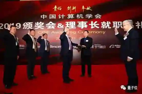 在颁奖结束后,进入了本年度颁奖会的另外一个重头环节:第十二届CCF理事长就职典礼。