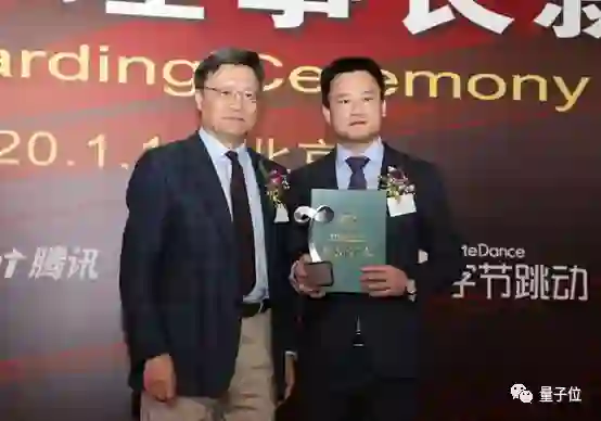 2019年授予安天科技集团创始人、董事长肖新光先生和百度公司深度学习平台飞桨总架构师于佃海先生该奖项。CCF理事长高文为他们颁奖。