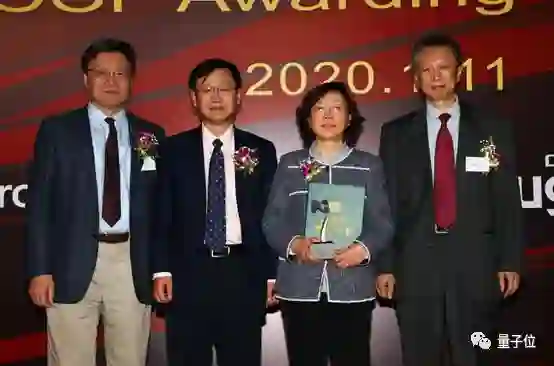 △ 2019年CCF杰出贡献奖获奖者彭思龙研究员(中)与颁奖嘉宾合影