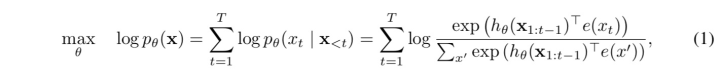 目前语言预训练模型的模式主要有2种,第一种是像gpt这种的auto-regressive模型,每个时刻都依据之前所有时刻的token来预测下一个token,auto-regressive的loss的定义如下: