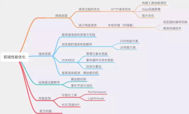 本小册将从网络层面和渲染层面两个大的维度来逐个点亮前端性能优化的技能树。