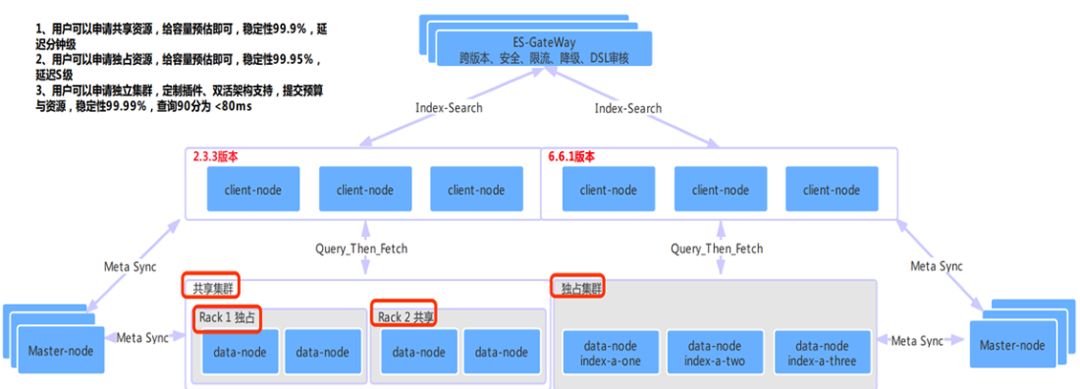 千万级别数据每秒的实时写入,PB 级日志数据的存储,对大规模 ElasticSearch 的集群提出诉求,但 ElasticSearch 有自己的元信息瓶颈,详见团队同学的分享:https://www.infoq.cn/article/SbfS6uOcF_gW6FEpQlLK;