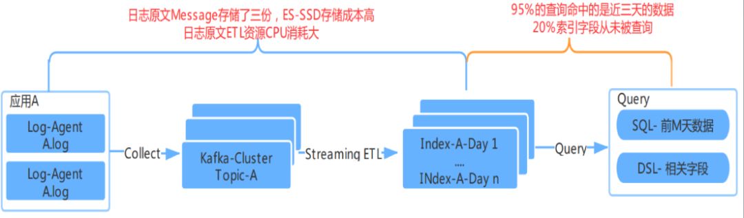 目前,在日志与安全分析场景下,存储成本压力很大,属于典型的“写多查少”的场景,我们对存储成本的耗散点进行了深入的分析,整体情况如下: